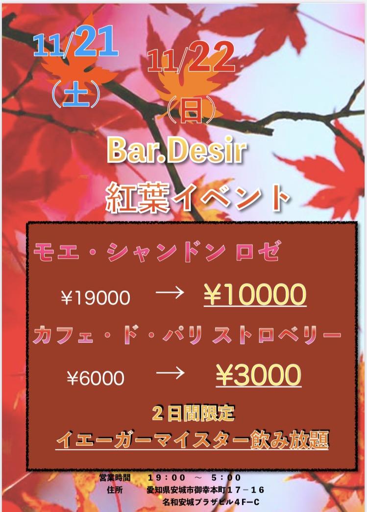 11月21日・22日(土)・(日)紅葉イベント開催いたします。
